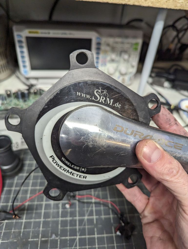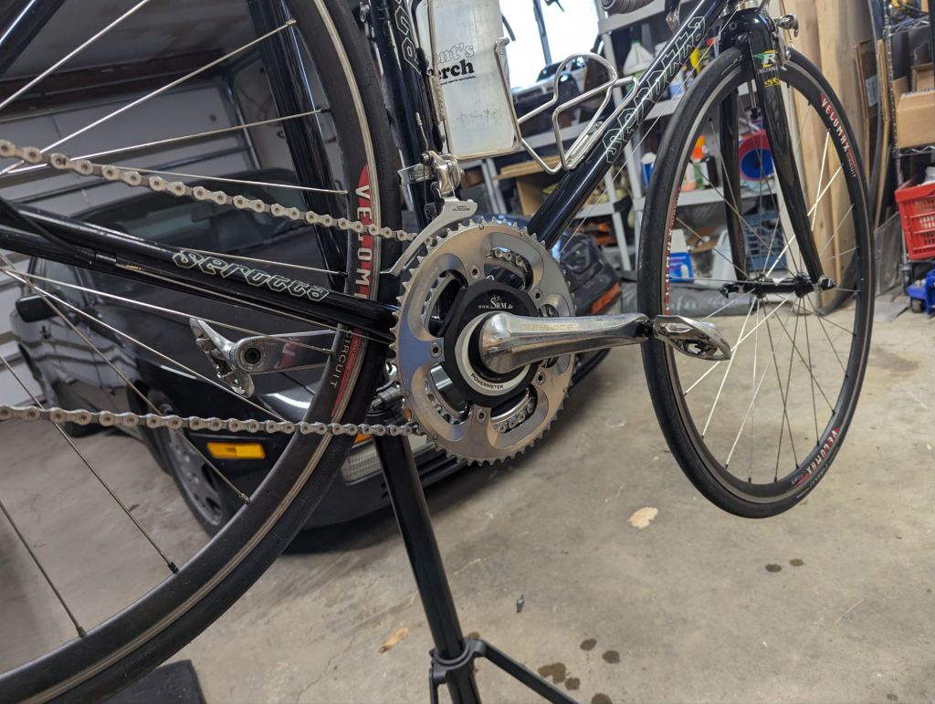 I learned that SRM crank spider meters are sort of the gold standard. I also learned that they are not as simple as swapping out a coin battery when the battery dies. So when a deal presented itself locally for a pair of dura ace crankset and a SRM wireless meter, I dug into SRM a little more. Would this work with my Garmin 530 computer? All signs pointed to yes, and I headed over. None of the identifying stickers were in place, so I told the guy I couldn’t confidently know the unit would work for me, so I set it down. He said, just make me an offer. Listed price was $200, and he has come down to $100 to entice me to come see it. Then I offered $50 to buy the unit.